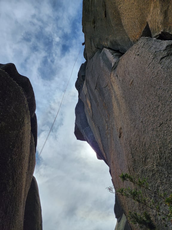 Rapel do cume leva diretamente até a base, com uma descida bem aérea, favorecendo um rapel incrível e com uma vista única.