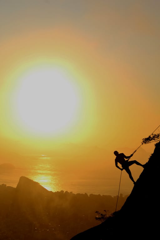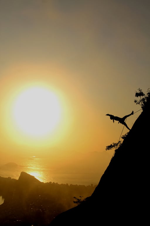 Durante o rapel, o praticante realiza descidas por cordas verticais em abismos,